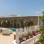 Het Oniro Suites Mykonos Town met 4 sterren biedt uitzicht op de zee en nodigt zijn gasten uit voor een maaltijd in een Grieks restaurant of een drankje in een lounge bar. Hier kan men genieten van de Mediterrane keuken op sechts 8 minuten wandelafstand van Agios Charalabos.